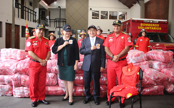 12月7日,中国驻秘鲁大使馆向秘鲁志愿消防总局捐助了2000套消防服,总价值共计20.6万索尔。秘鲁第一夫人南希·兰格、中国驻秘鲁大使馆贾桂德大使、消防总局局长安赫莱斯一道出席了物资的捐赠仪式。